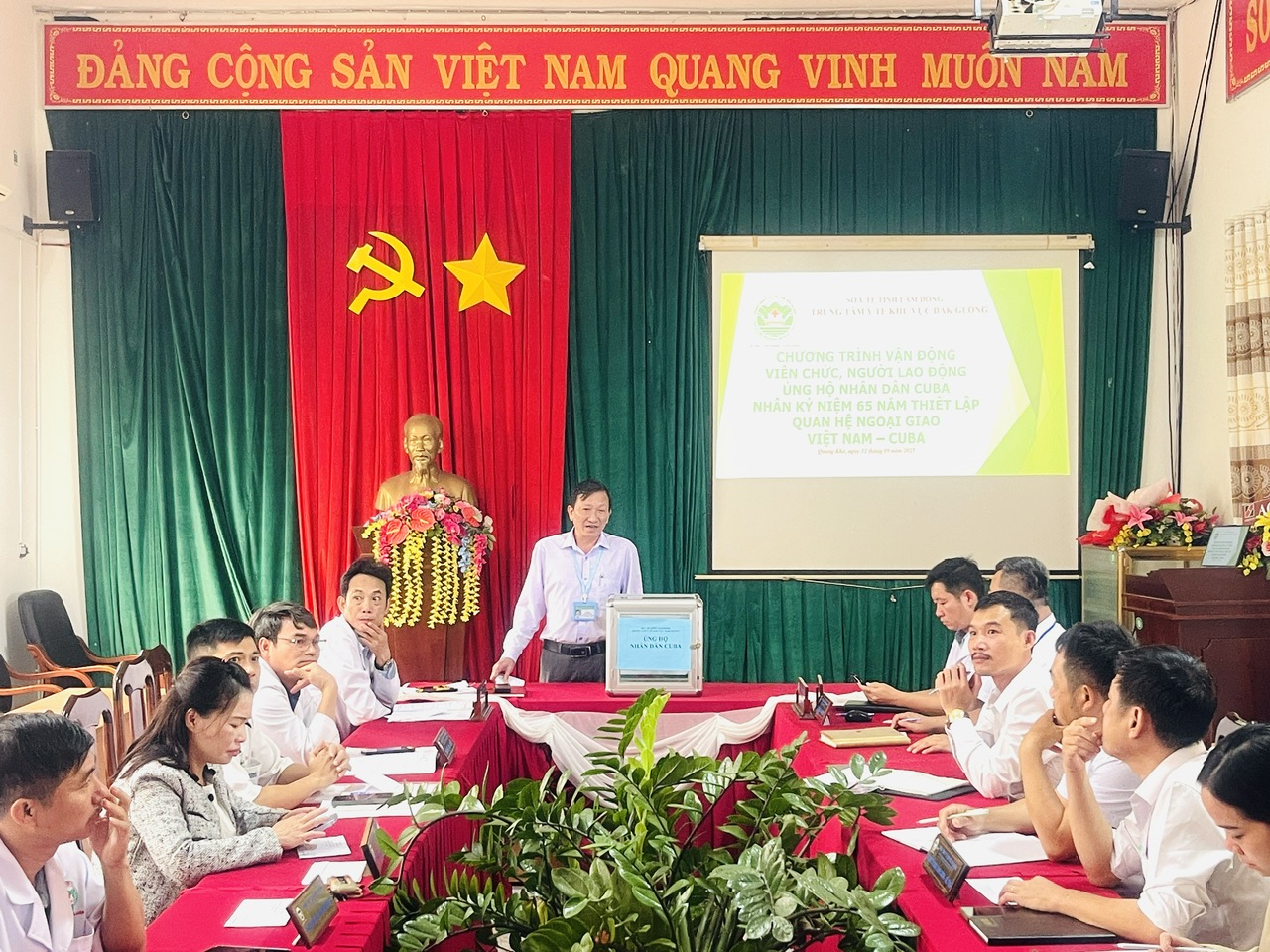 Hưởng ứng lời kêu gọi của Ban Chấp hành Trung ương Hội Chữ thập đỏ Việt Nam và Ủy ban mặt trận Tổ quốc Việt Nam tỉnh Lâm Đồng, đồng thời thực hiện chủ trương của Sở Y tế về việc phát động ủng hộ Nhân dân Cu Ba nhân kỷ niệm 65 năm thiết lập quan hệ ngoại giao giữa Việt Nam - Cuba, sáng ngày 12/9/2025, tập thể cán bộ, viên chức, người lao động Trung tâm Y tế khu vực Đắk Glong đã tổ chức quyên góp nhằm chung tay ủng hộ Nhân dân Cuba.